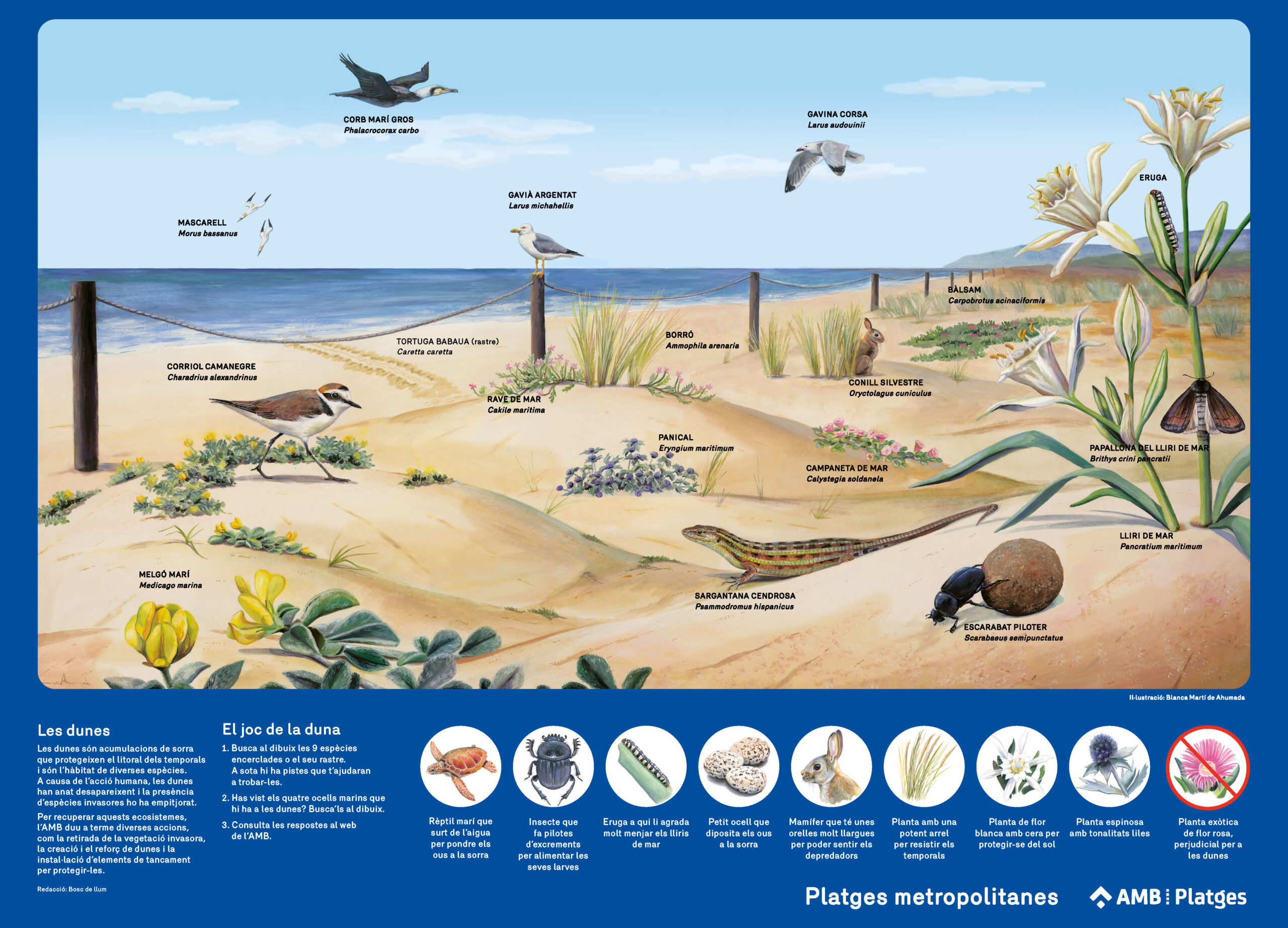Il·lustracions de flora i fauna de les dunes per a AMB Platges